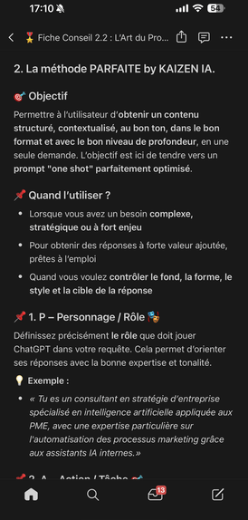 Prompts métiers créées avec la méthode "PARFAITE" by Kaizen