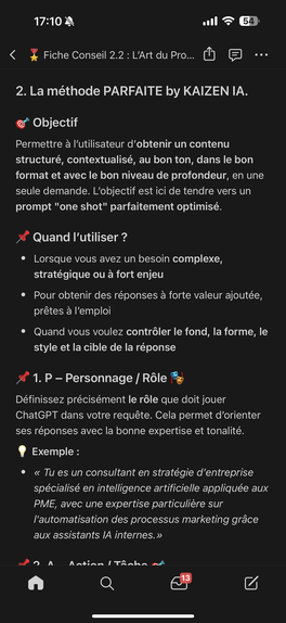 Prompts métiers créées avec la méthode "PARFAITE" by Kaizen